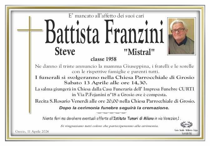 Lascia un messaggio di cordoglio, lo recapiteremo ai familiari di Franzini Battista Steve