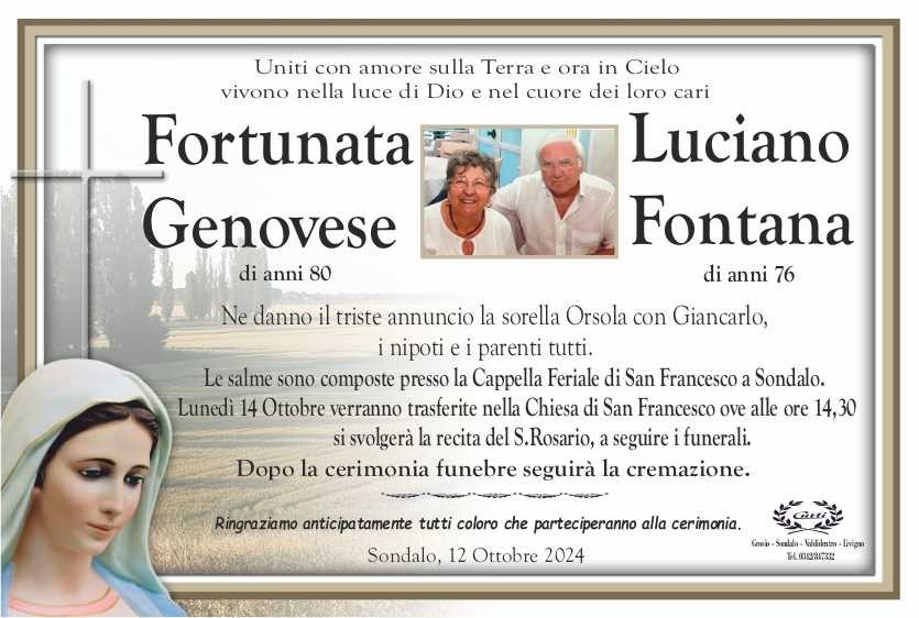 Lascia un messaggio di cordoglio, lo recapiteremo ai familiari di Genovese Fortunata E Luciano Fontana
