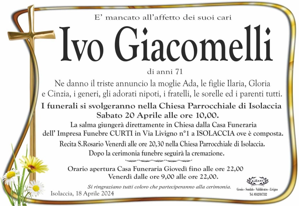 Lascia un messaggio di cordoglio, lo recapiteremo ai familiari di Giacomelli Ivo