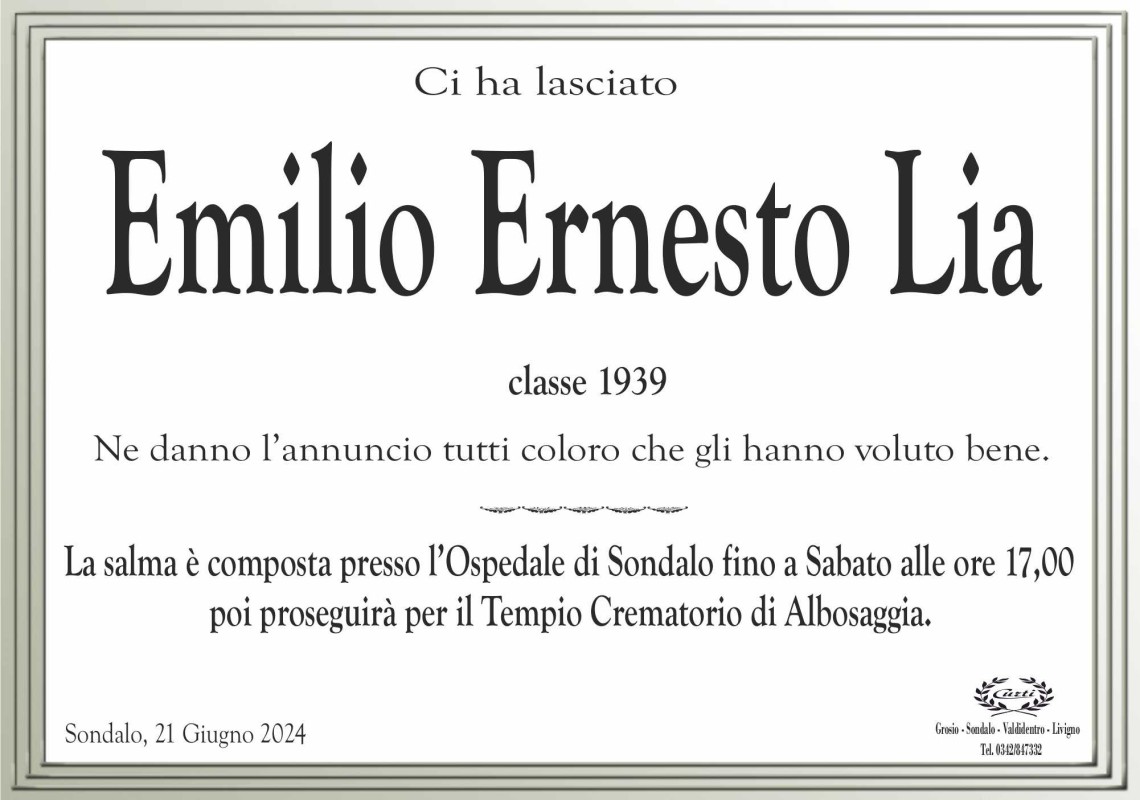 Lascia un messaggio di cordoglio, lo recapiteremo ai familiari di Lia Emilio Ernesto