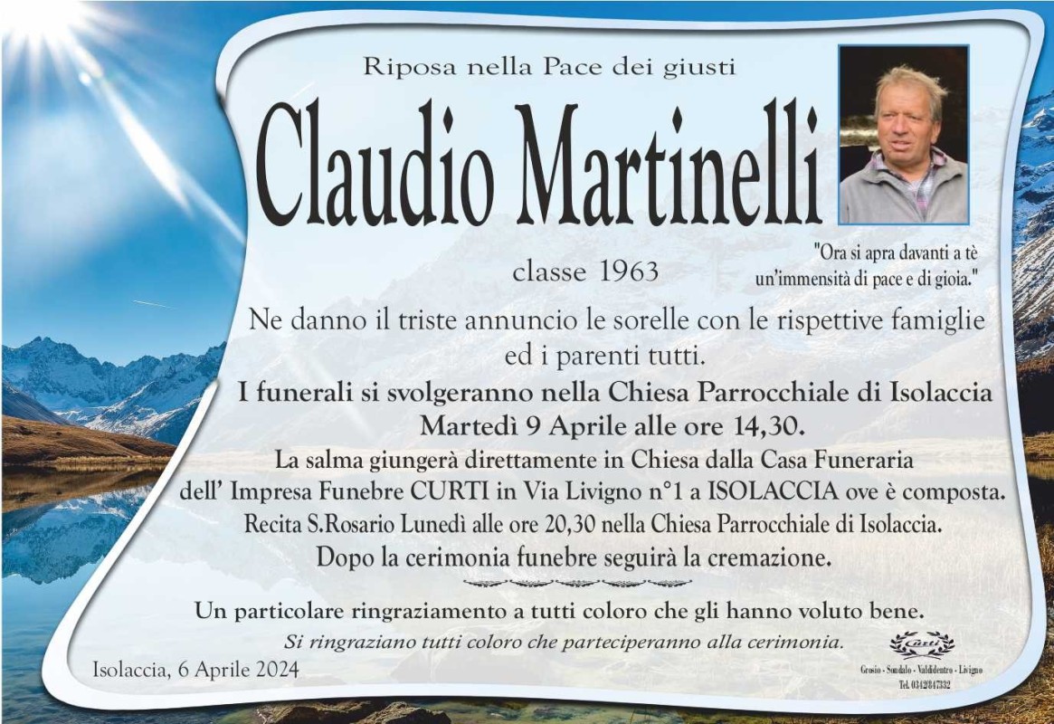 Lascia un messaggio di cordoglio, lo recapiteremo ai familiari di Martinelli Claudio