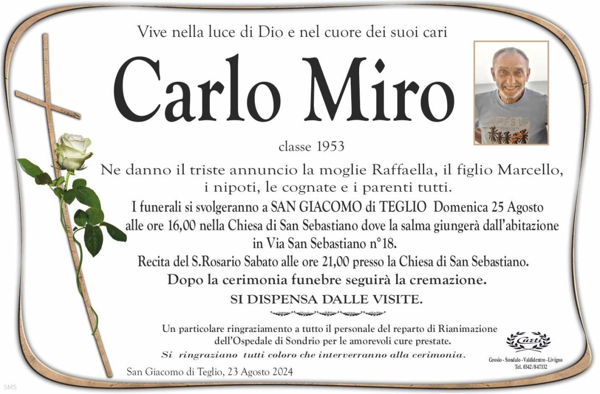 Lascia un messaggio di cordoglio, lo recapiteremo ai familiari di Miro Carlo