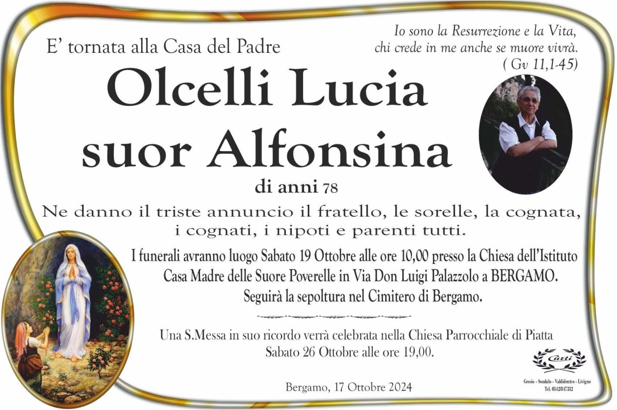Lascia un messaggio di cordoglio, lo recapiteremo ai familiari di Olcelli Lucia Suor Alfonsina