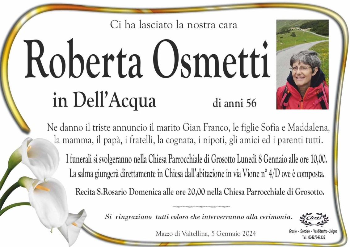 Lascia un messaggio di cordoglio, lo recapiteremo ai familiari di Osmetti Roberta