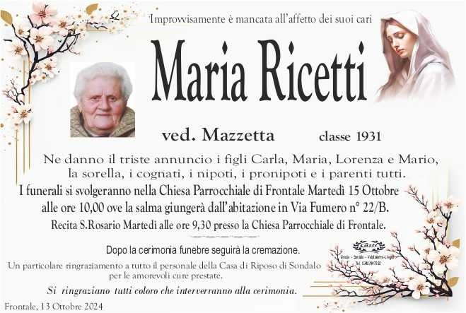 Lascia un messaggio di cordoglio, lo recapiteremo ai familiari di Ricetti Maria