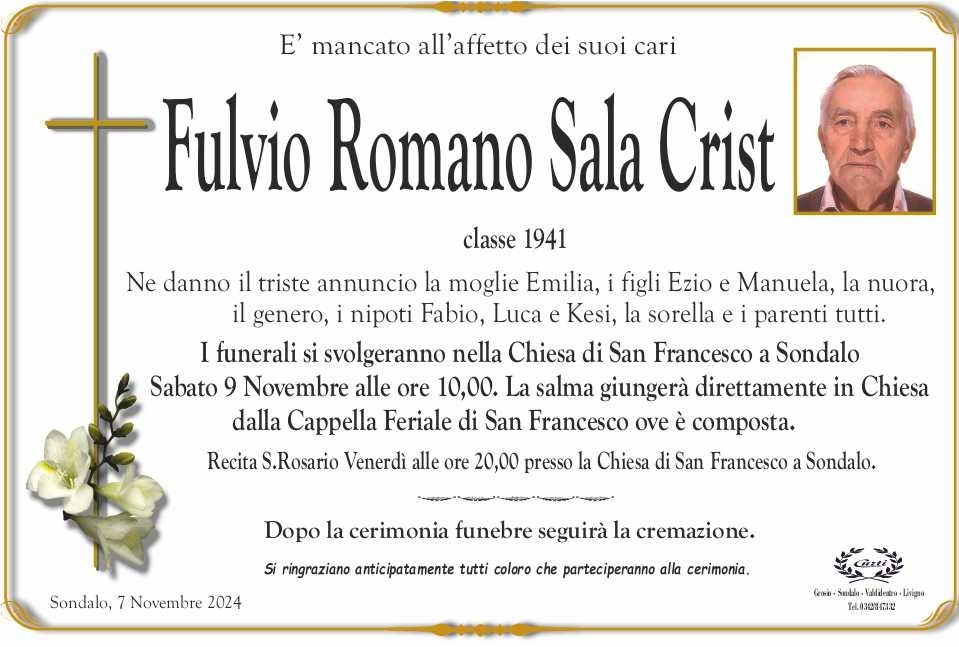 Lascia un messaggio di cordoglio, lo recapiteremo ai familiari di Sala Crist Fulvio Romano