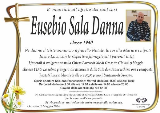 Lascia un messaggio di cordoglio, lo recapiteremo ai familiari di Sala Danna Eusebio