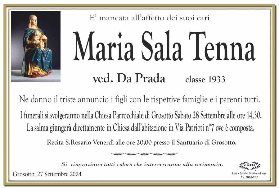 Lascia un messaggio di cordoglio, lo recapiteremo ai familiari di Sala Tenna Maria