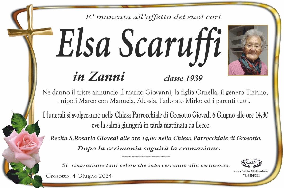Lascia un messaggio di cordoglio, lo recapiteremo ai familiari di Scaruffi Elsa