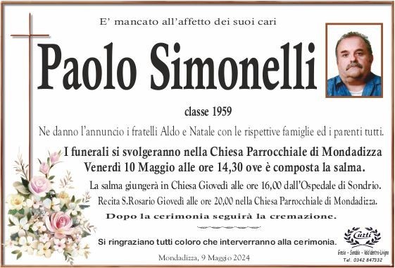 Lascia un messaggio di cordoglio, lo recapiteremo ai familiari di Simonelli Paolo