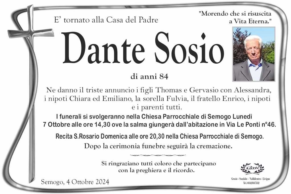 Lascia un messaggio di cordoglio, lo recapiteremo ai familiari di Sosio Dante