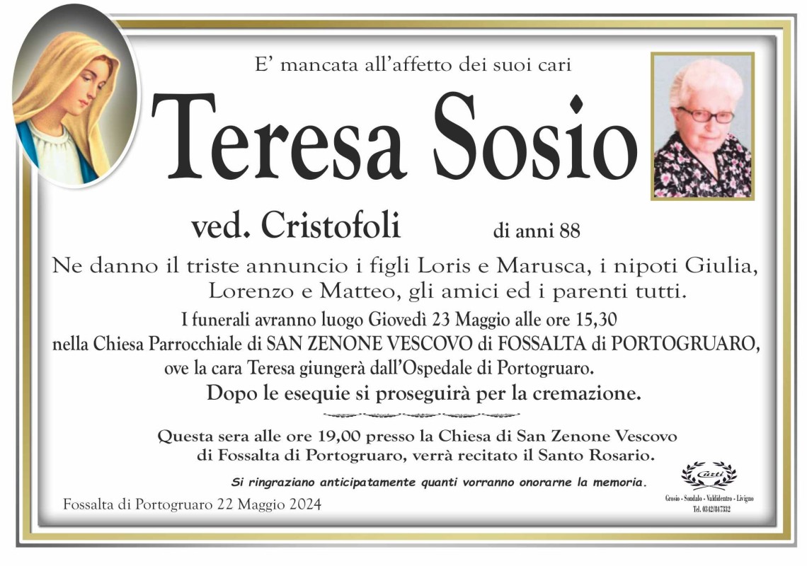 Lascia un messaggio di cordoglio, lo recapiteremo ai familiari di Sosio Teresa