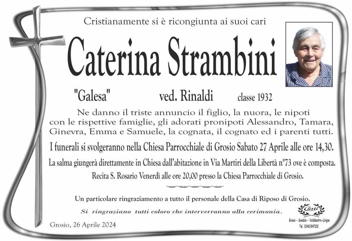 Lascia un messaggio di cordoglio, lo recapiteremo ai familiari di Strambini Caterina