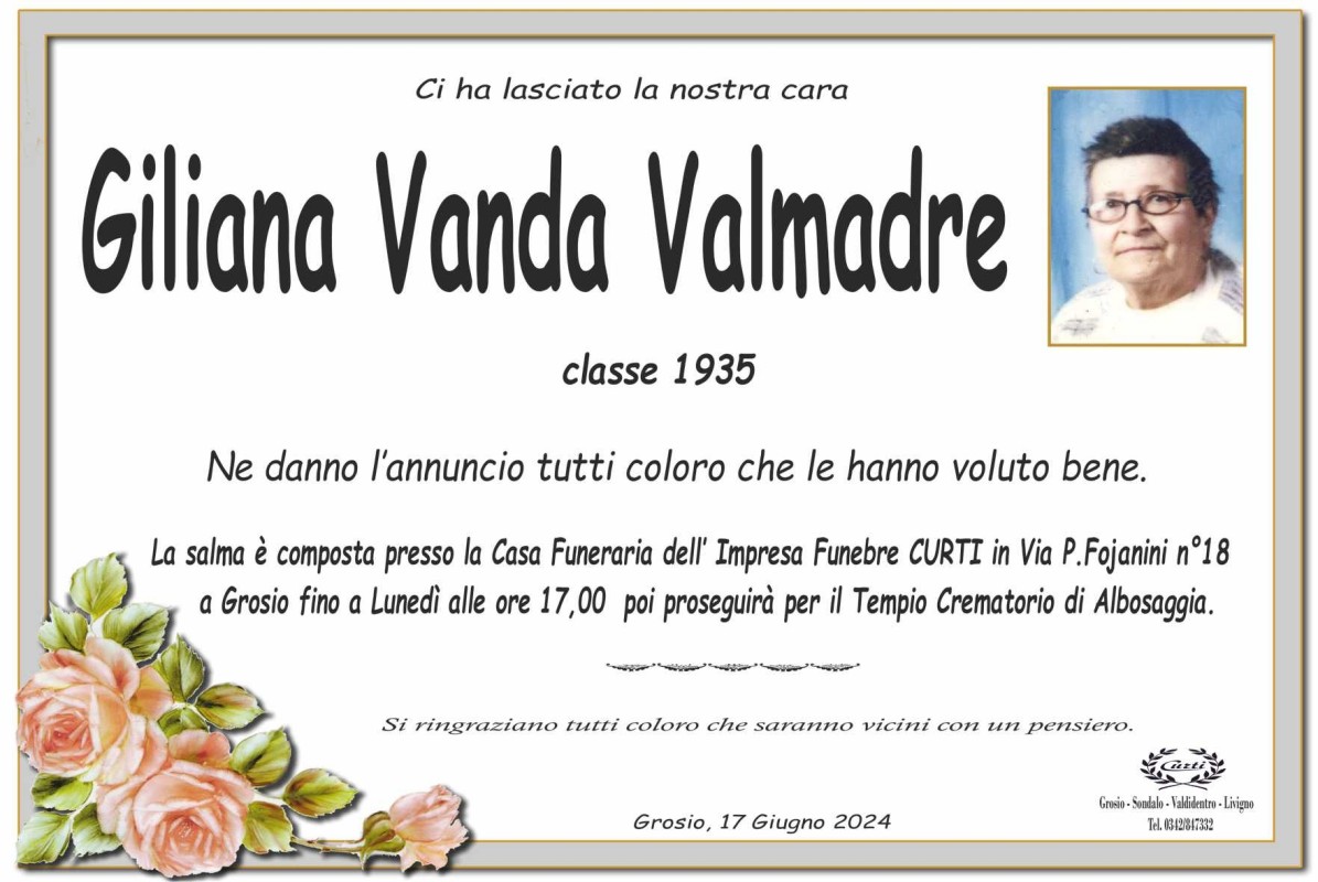 Lascia un messaggio di cordoglio, lo recapiteremo ai familiari di Valmadre Giliana Vanda