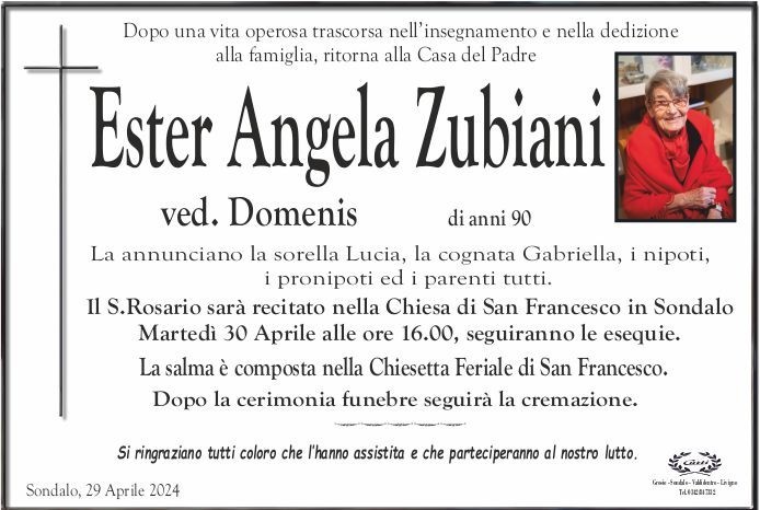 Lascia un messaggio di cordoglio, lo recapiteremo ai familiari di Zubiani Ester Angela