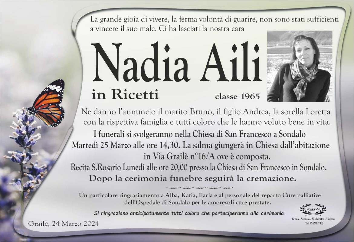 Lascia un messaggio di cordoglio, lo recapiteremo ai familiari di Aili Nadia
