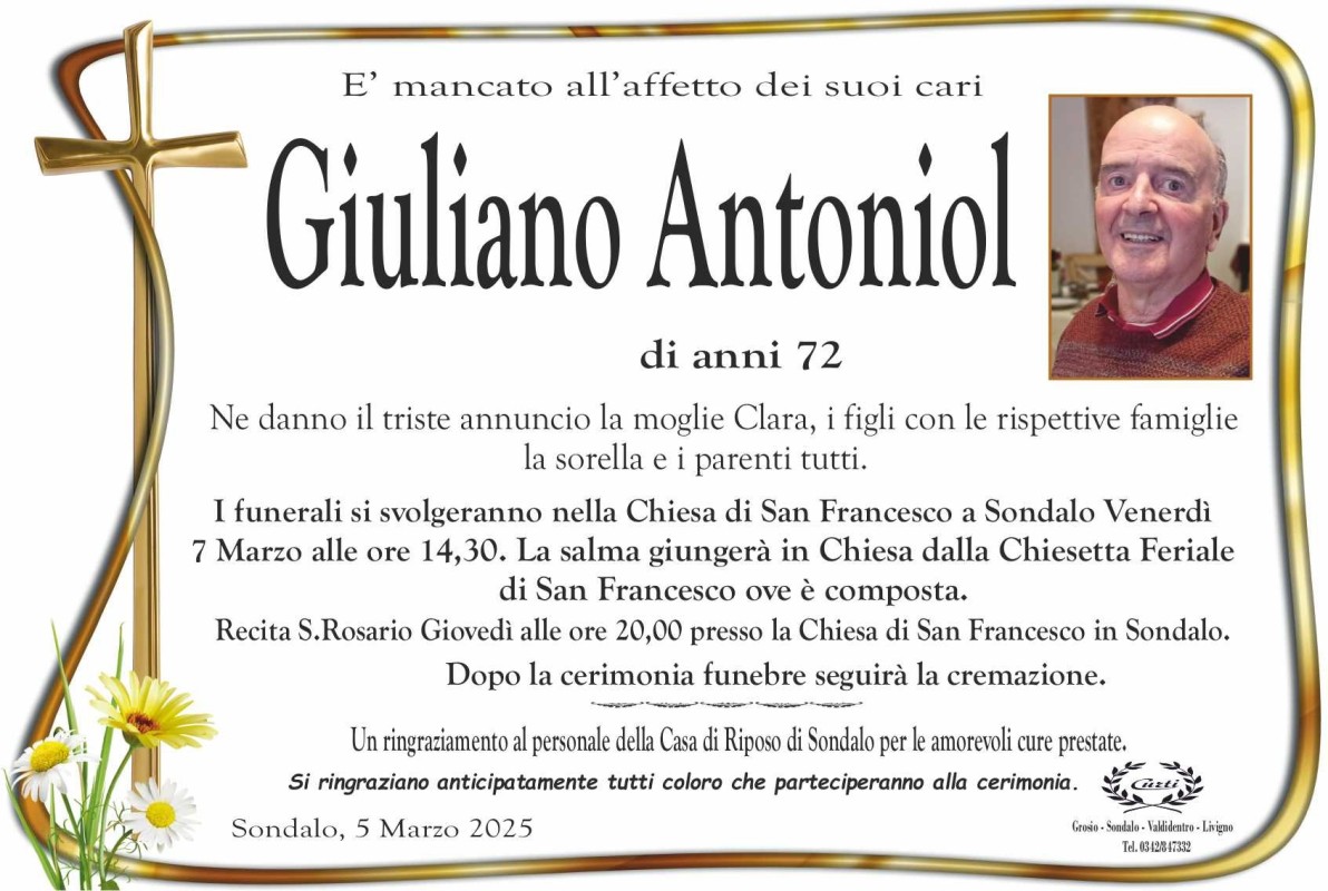 Lascia un messaggio di cordoglio, lo recapiteremo ai familiari di Antoniol Giuliano