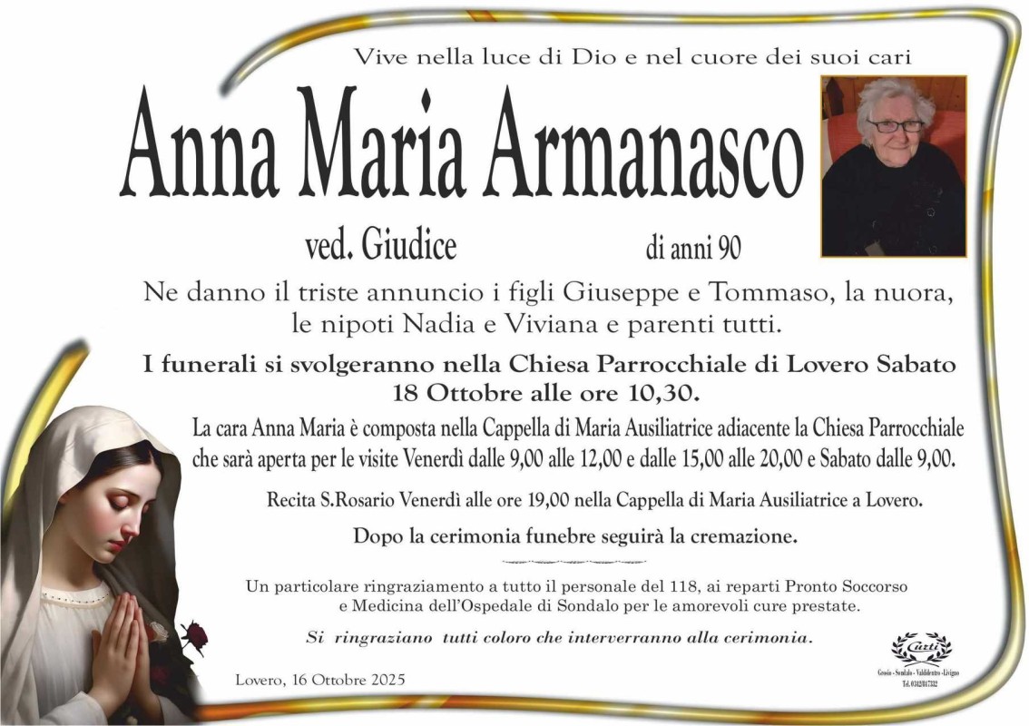 Lascia un messaggio di cordoglio, lo recapiteremo ai familiari di armanasco anna maria