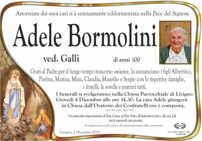 Lascia un messaggio di cordoglio, lo recapiteremo ai familiari di Bormolini Adele