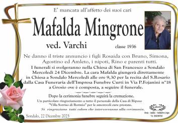 Attraverso i nostri necrologi ci impegniamo a onorare la memoria del defunto, consulta il nostro archivio e lascia il tuo messaggio di cordoglio.