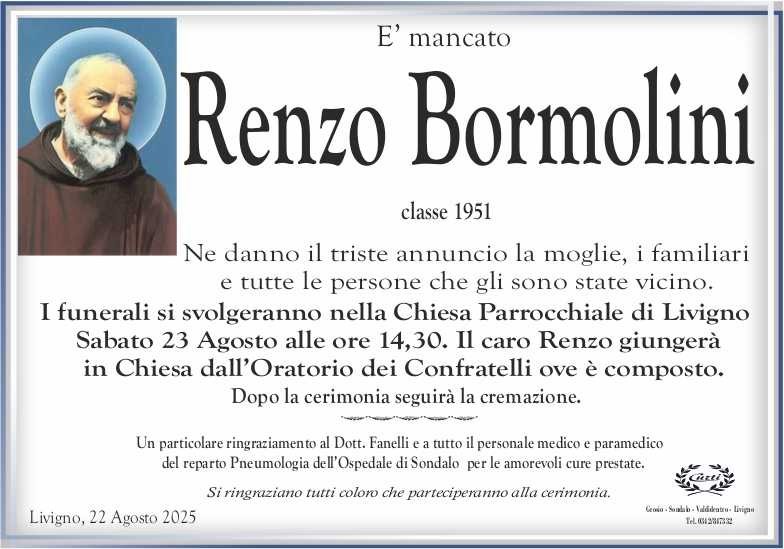 Lascia un messaggio di cordoglio, lo recapiteremo ai familiari di bormolini renzo