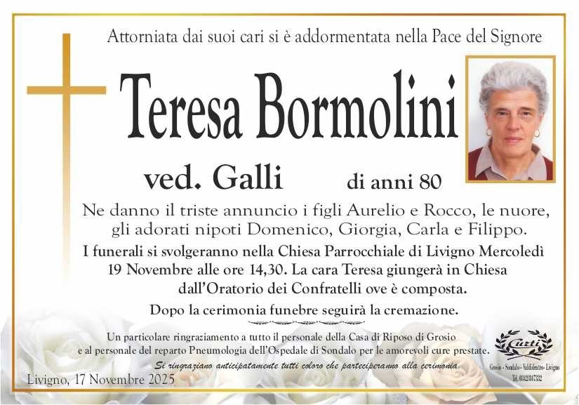 Lascia un messaggio di cordoglio, lo recapiteremo ai familiari di bormolini teresa