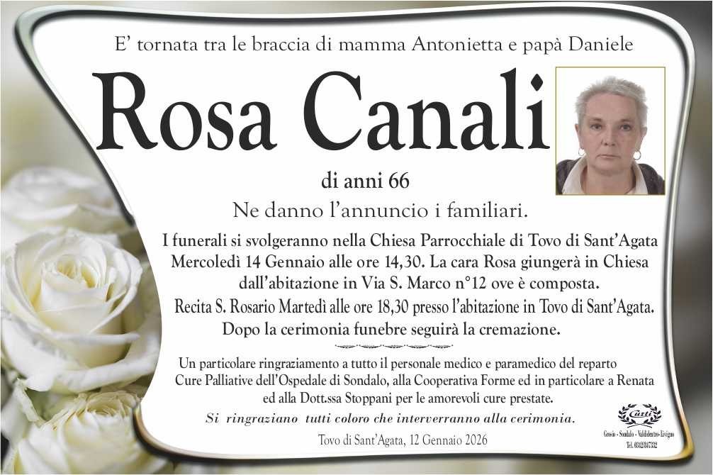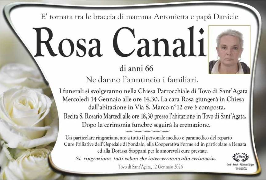 Lascia un messaggio di cordoglio, lo recapiteremo ai familiari di canali rosa
