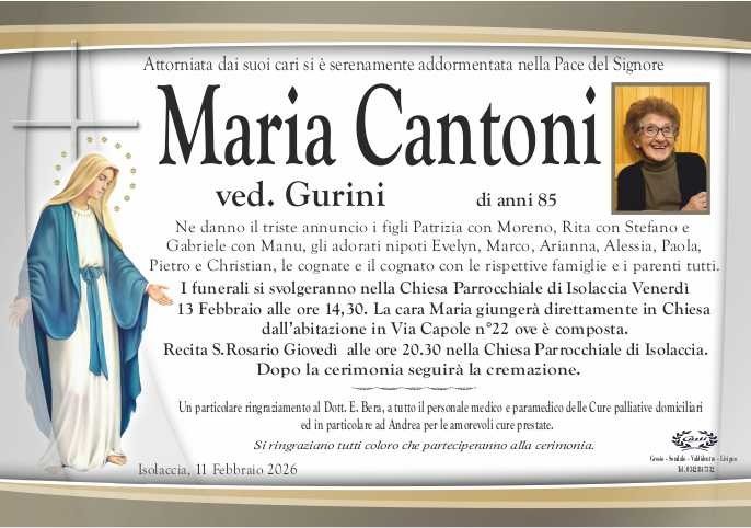 Lascia un messaggio di cordoglio, lo recapiteremo ai familiari di cantoni maria