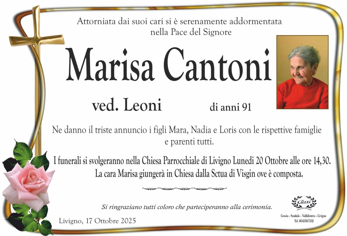 Lascia un messaggio di cordoglio, lo recapiteremo ai familiari di cantoni marisa
