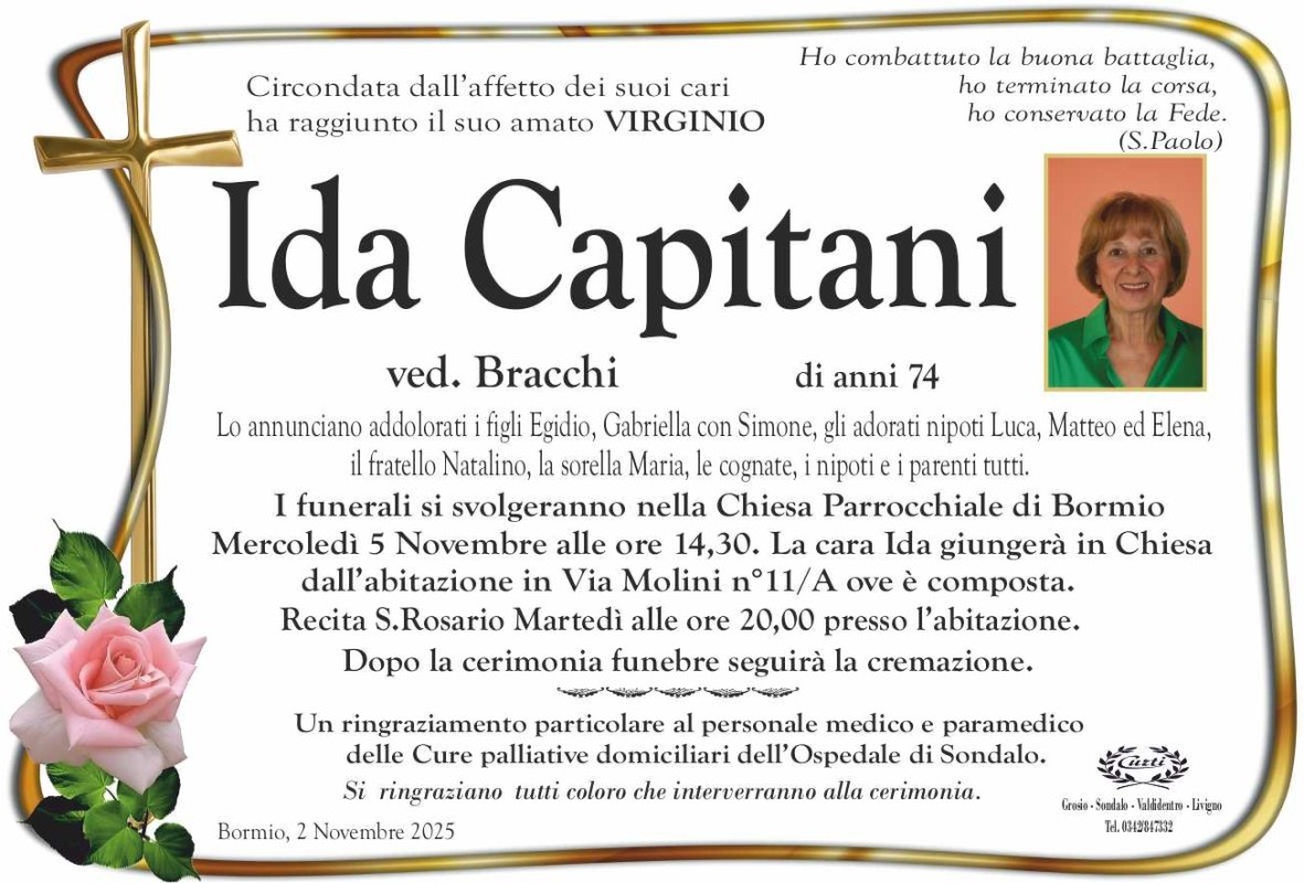 Lascia un messaggio di cordoglio, lo recapiteremo ai familiari di capitani ida
