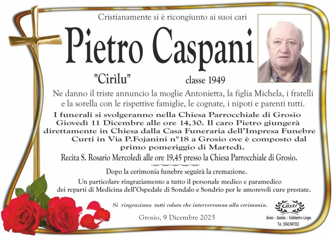 Lascia un messaggio di cordoglio, lo recapiteremo ai familiari di caspani pietro