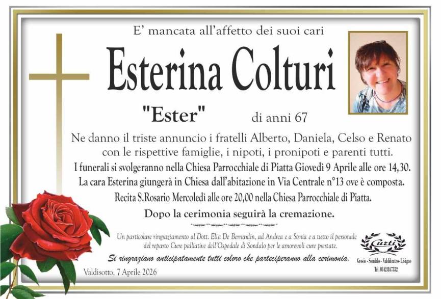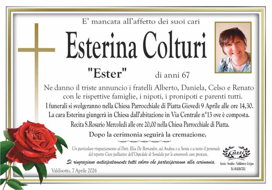 Lascia un messaggio di cordoglio, lo recapiteremo ai familiari di colturi esterina