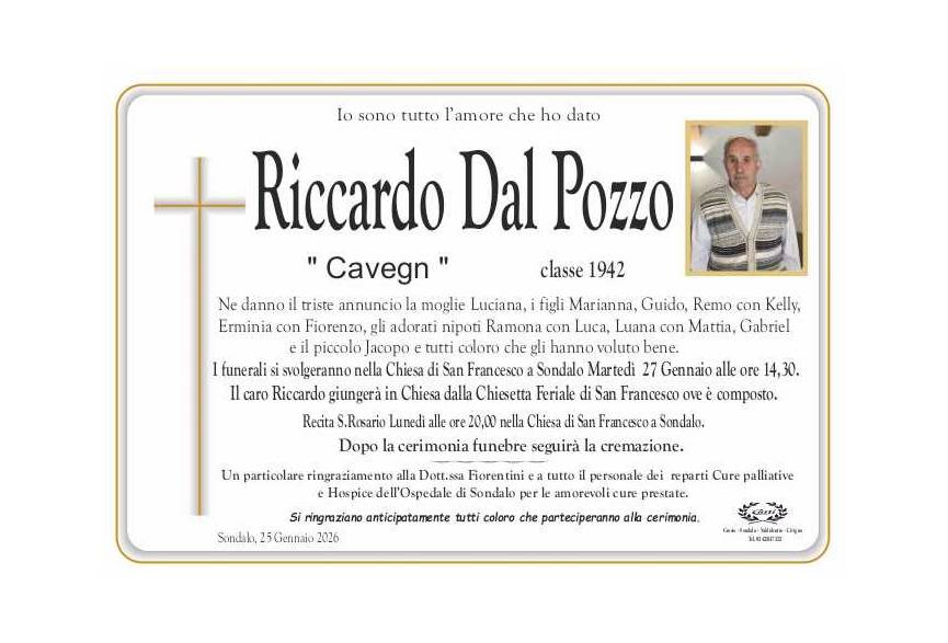 Lascia un messaggio di cordoglio, lo recapiteremo ai familiari di dal pozzo riccardo