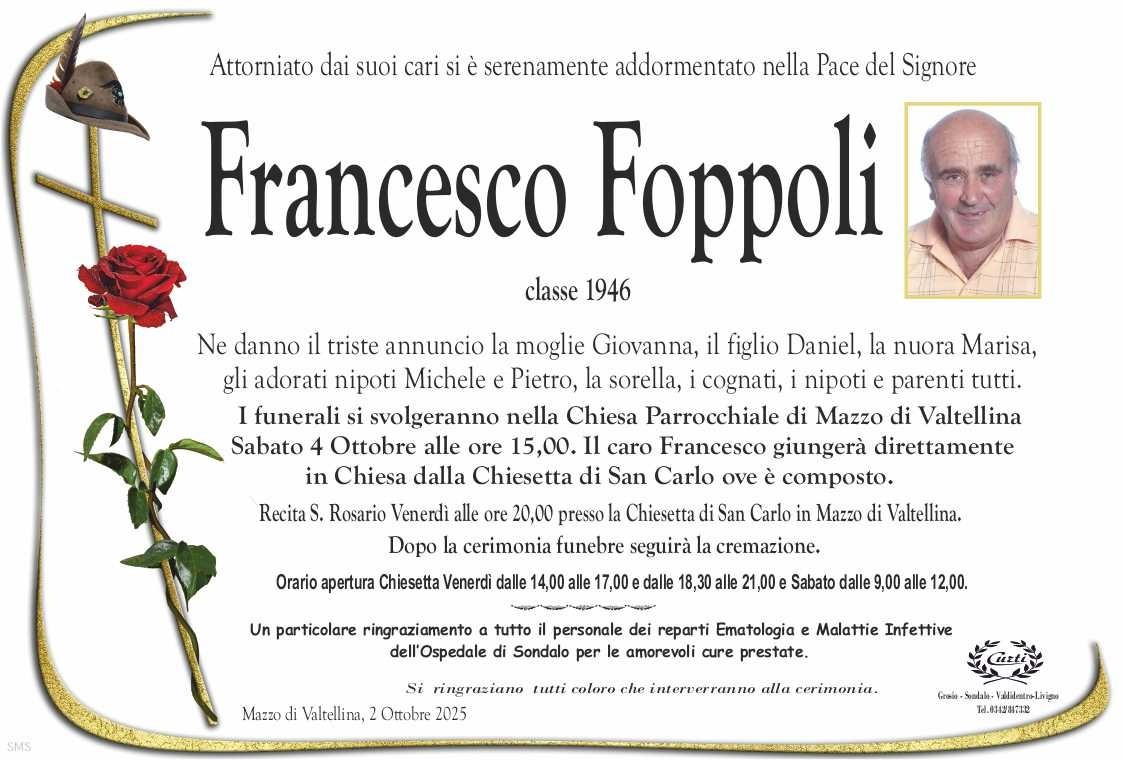 Lascia un messaggio di cordoglio, lo recapiteremo ai familiari di foppoli francesco