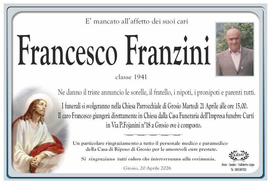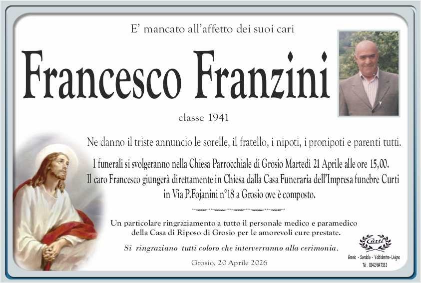 Lascia un messaggio di cordoglio, lo recapiteremo ai familiari di franzini francesco