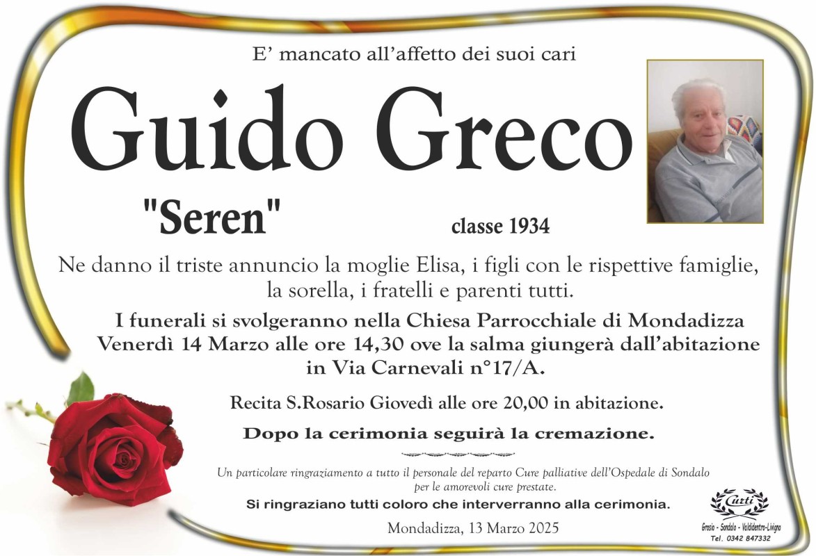 Lascia un messaggio di cordoglio, lo recapiteremo ai familiari di Greco Guido