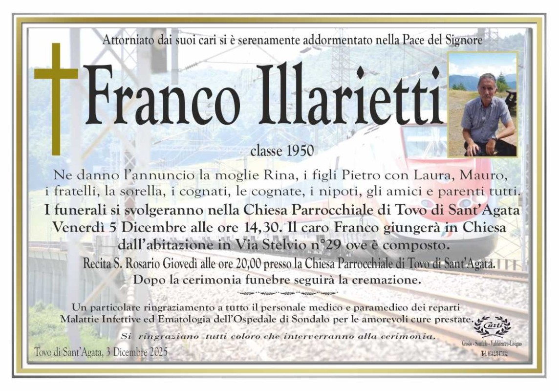 Lascia un messaggio di cordoglio, lo recapiteremo ai familiari di illarietti franco