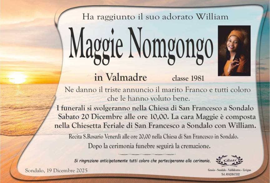 Lascia un messaggio di cordoglio, lo recapiteremo ai familiari di maggie nomgongo