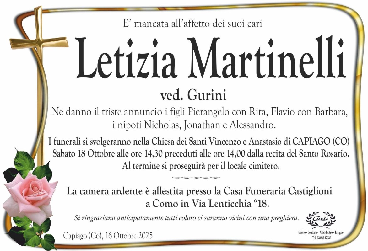 Lascia un messaggio di cordoglio, lo recapiteremo ai familiari di martinelli letizia isolaccia