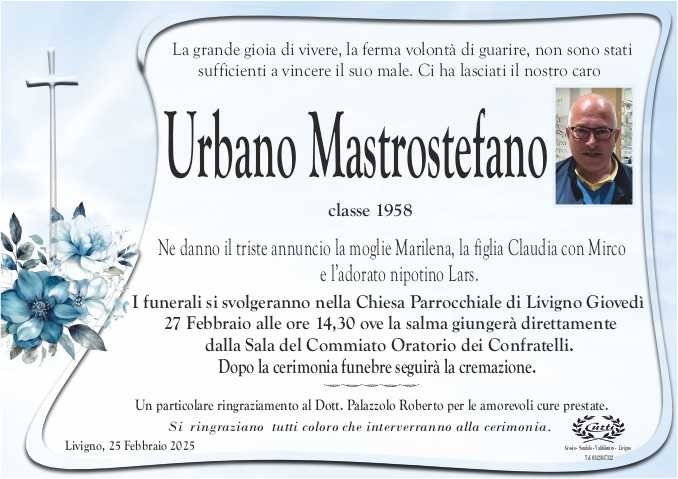 Lascia un messaggio di cordoglio, lo recapiteremo ai familiari di Mastrostefano Urbano