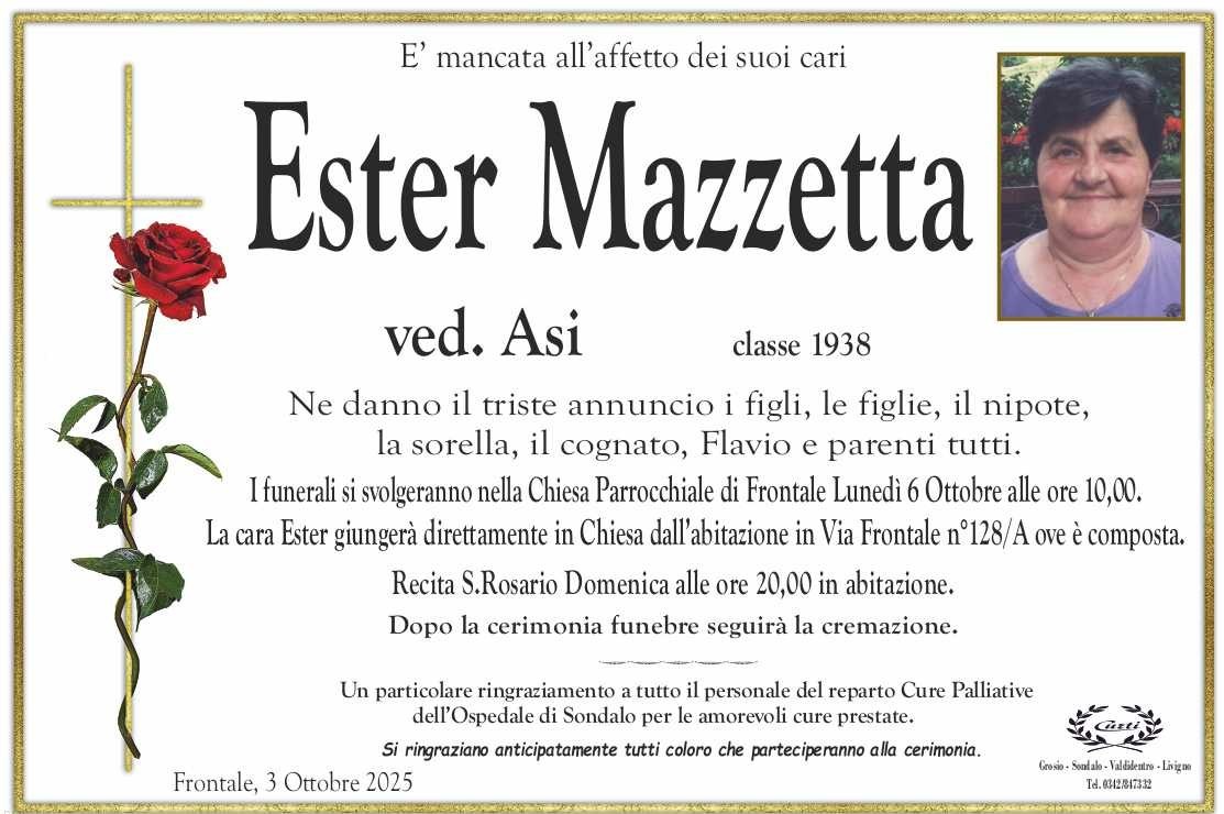 Lascia un messaggio di cordoglio, lo recapiteremo ai familiari di mazzetta ester