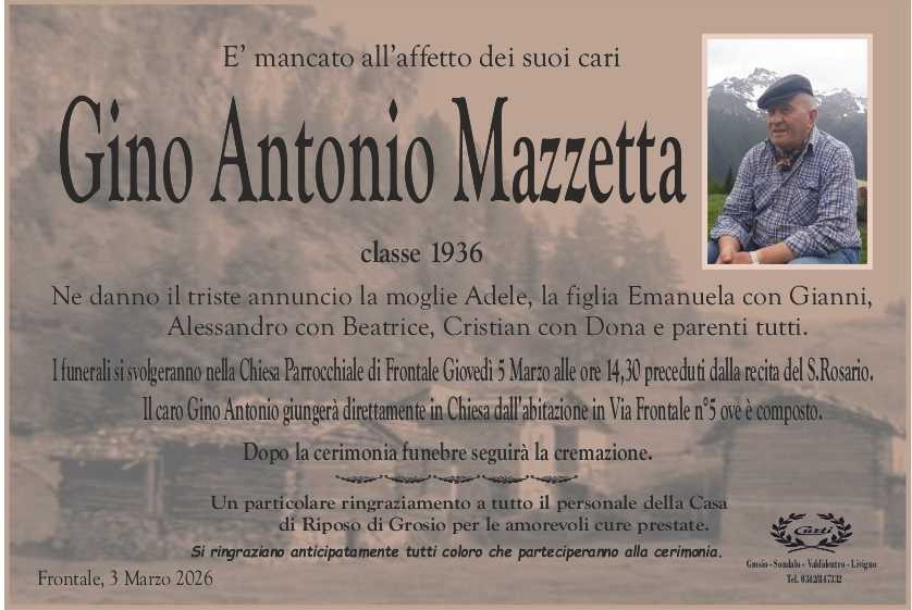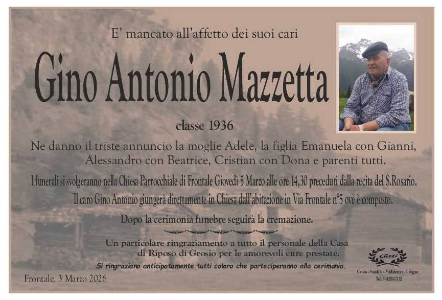 Lascia un messaggio di cordoglio, lo recapiteremo ai familiari di mazzetta gino antonio