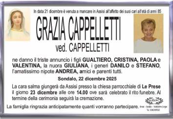 Attraverso i nostri necrologi ci impegniamo a onorare la memoria del defunto, consulta il nostro archivio e lascia il tuo messaggio di cordoglio.