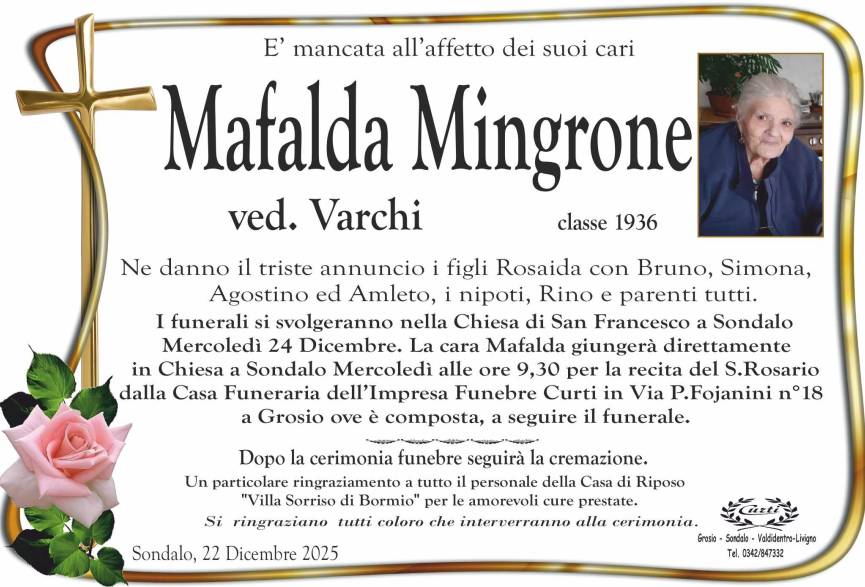Lascia un messaggio di cordoglio, lo recapiteremo ai familiari di mingrone mafalda