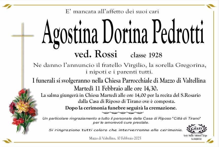 Lascia un messaggio di cordoglio, lo recapiteremo ai familiari di Pedrotti Agostina Dorina