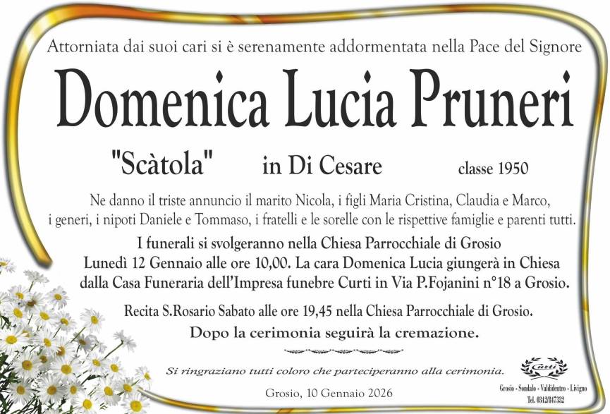 Lascia un messaggio di cordoglio, lo recapiteremo ai familiari di pruneri domenica lucia