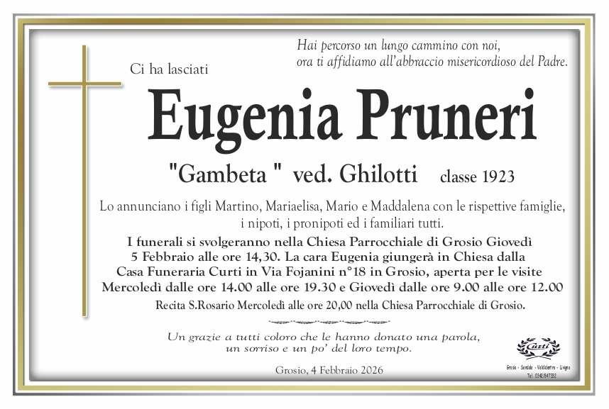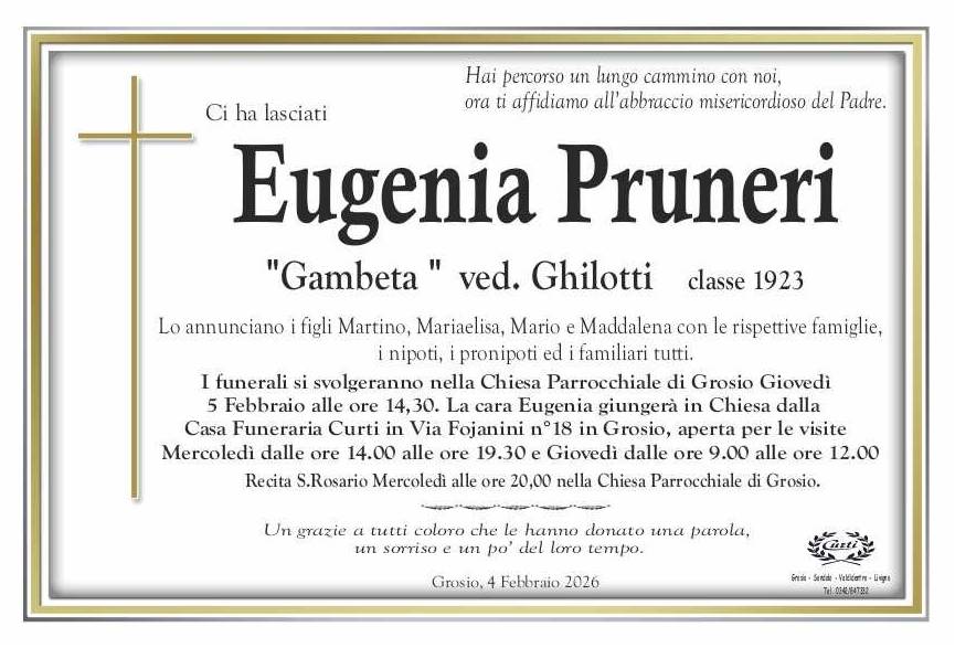 Lascia un messaggio di cordoglio, lo recapiteremo ai familiari di pruneri eugenia