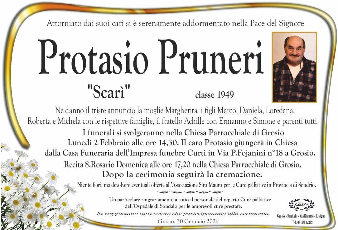 Lascia un messaggio di cordoglio, lo recapiteremo ai familiari di pruneri protasio