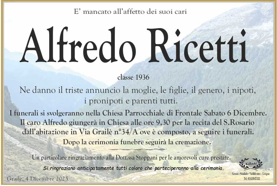 Lascia un messaggio di cordoglio, lo recapiteremo ai familiari di Ricetti Alfredo