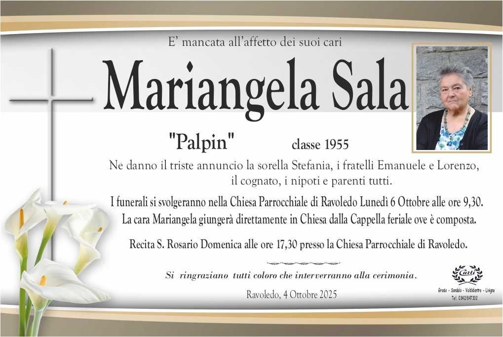 Lascia un messaggio di cordoglio, lo recapiteremo ai familiari di sala mariangela